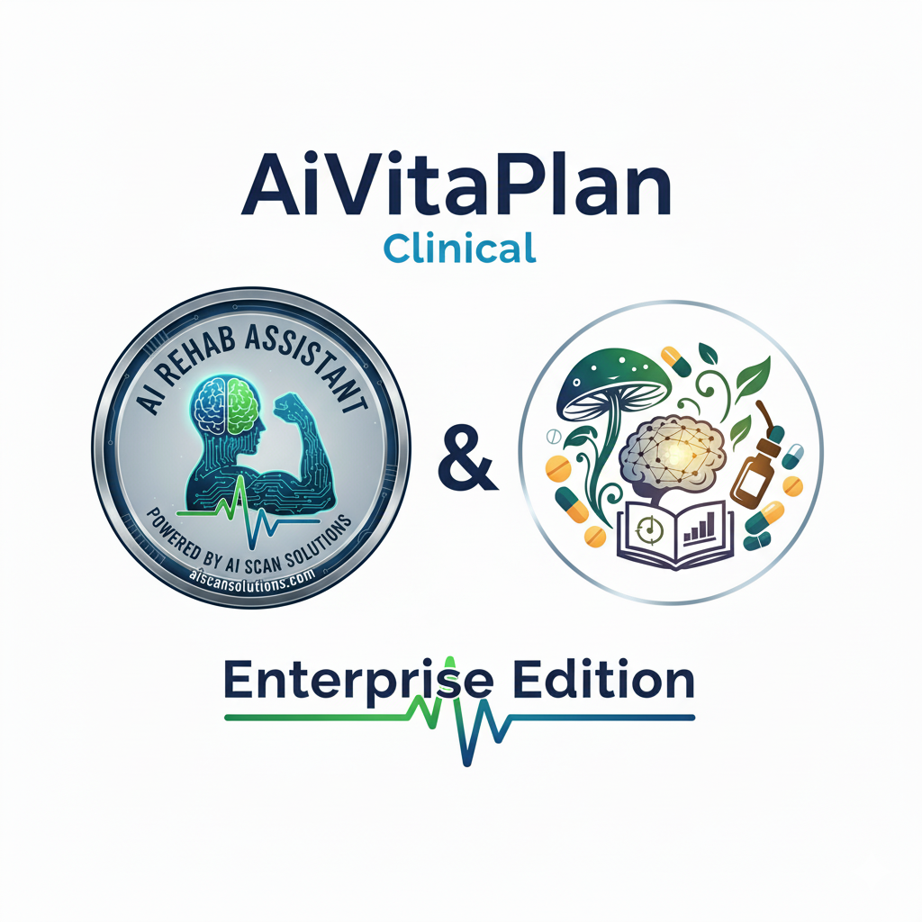 Revolutionize your practice with the first fully integrated suite that combines deep wellness planning with advanced physical therapy protocols. The AiVitaPlan Clinical Enterprise Edition brings together two powerful, AI-driven solutions—AiVitaPlan Clinical and AI Rehab Assistant—into a single, seamless platform designed for the modern healthcare enterprise.